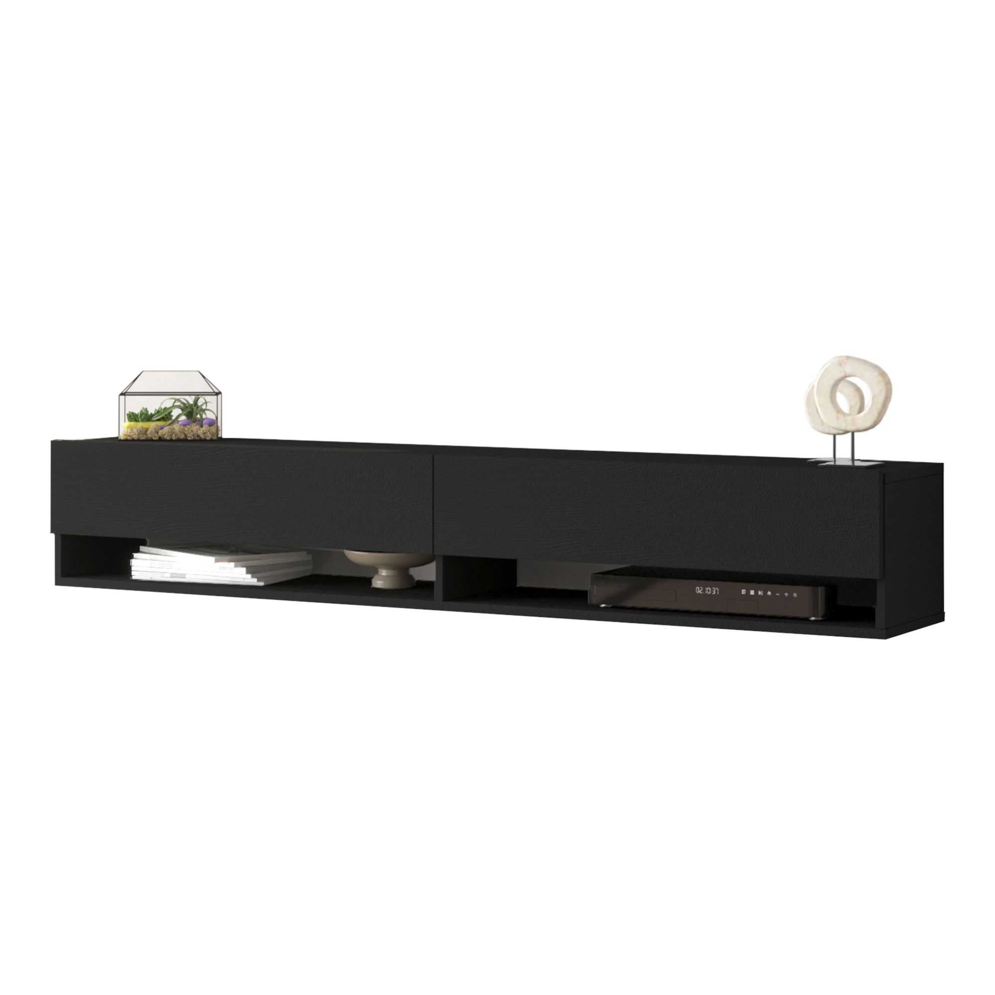 Comodă TV suspendată Laitila 180 cm, negru, cu 2 uși și rafturi
