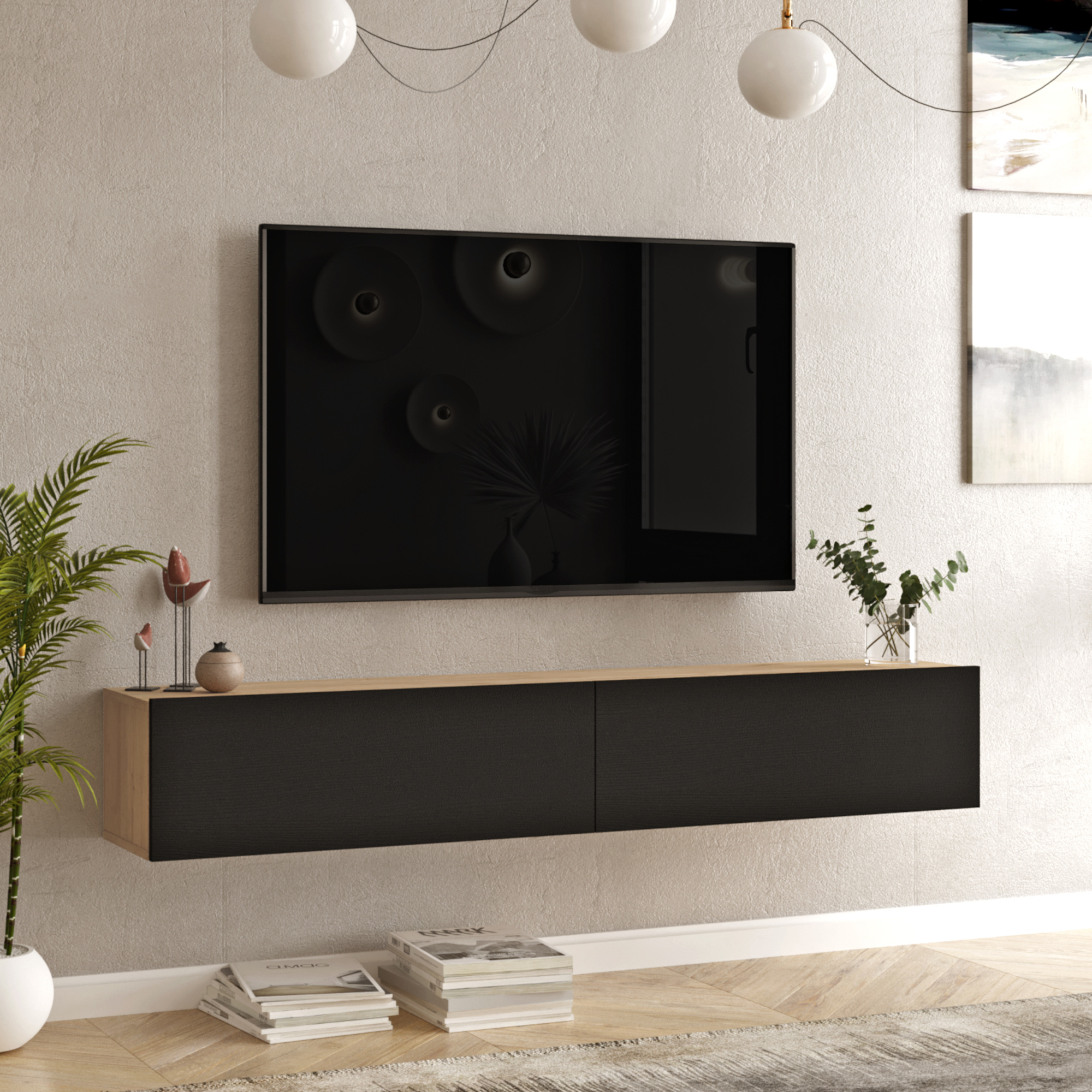 Comodă TV suspendată Lapinlahti 180 cm, stejar și negru, [en.casa]