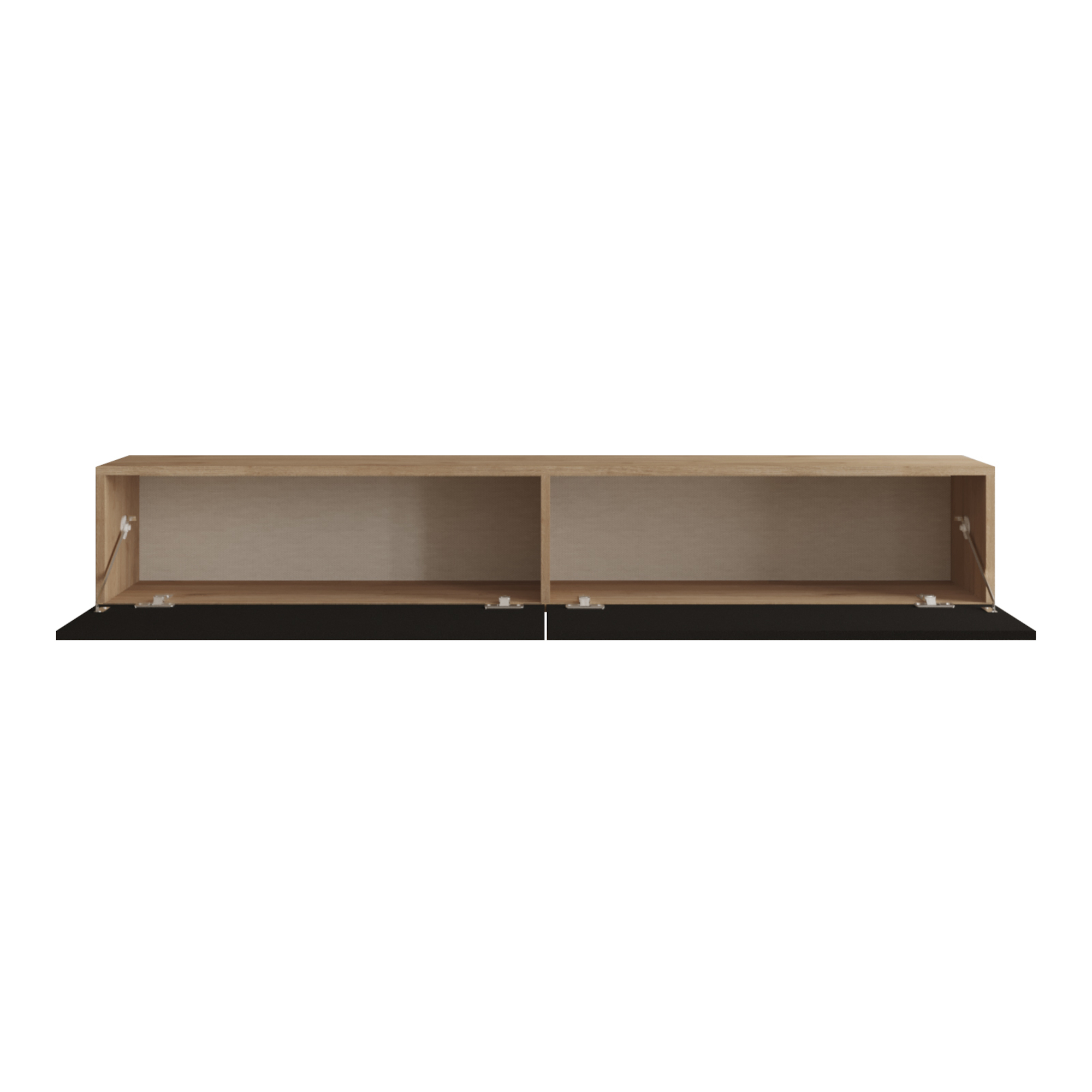 Modelul este potrivit pentru amenajări minimalistice sau moderne, iar formatul său lung de 180 cm pune bine în valoare peretele TV. Cele 2 uși de dulap, care se deschid separat, permit depozitarea discretă a accesoriilor, cablurilor sau altor obiecte utile din living.