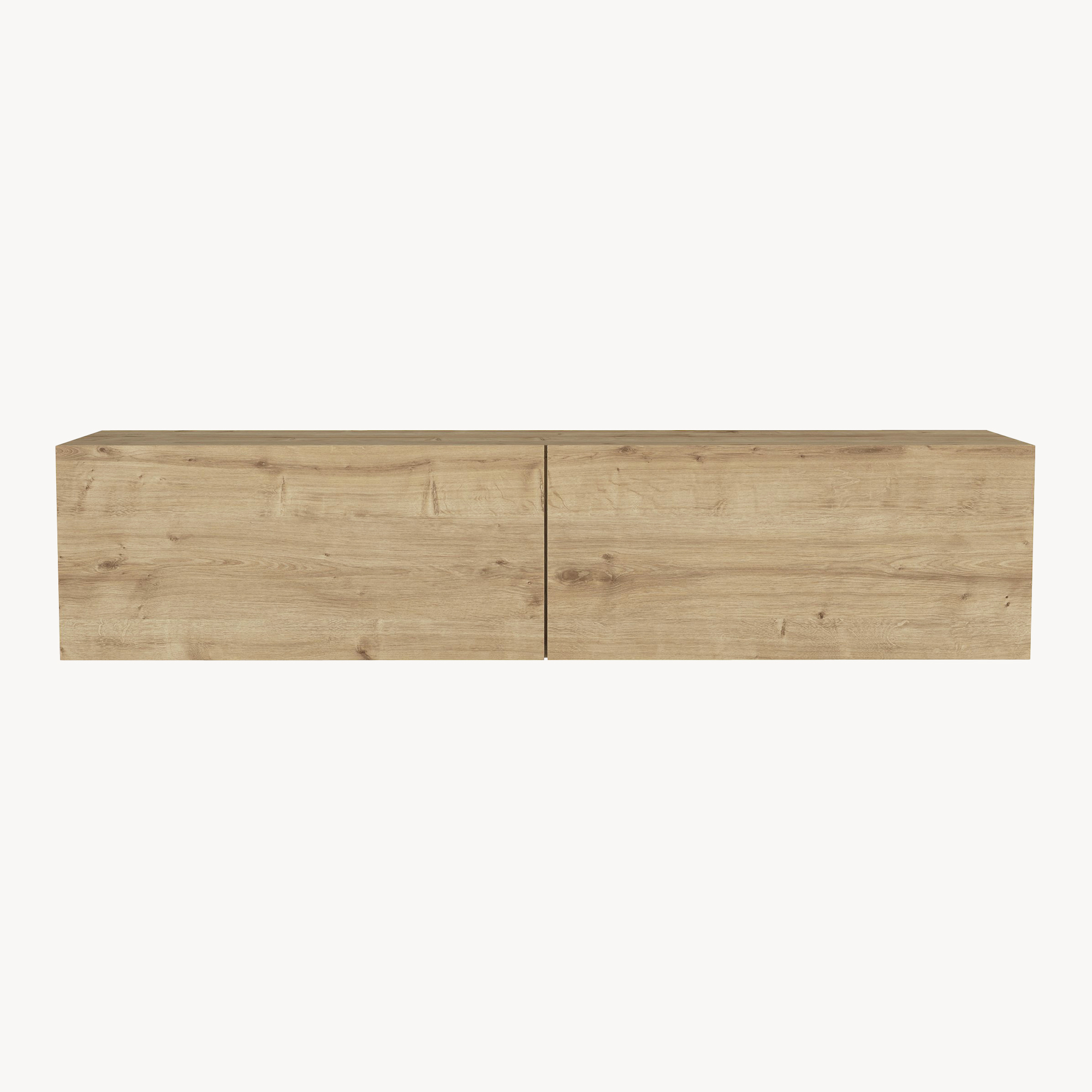 Comoda TV suspendată Nolven este alegerea ideală pentru un living modern, aerisit și bine organizat. Cu un design elegant, liniar și un aspect de stejar natural, această comodă TV suspendată creează un efect vizual plăcut de mobilier „plutitor”, perfect pentru amenajări contemporane.