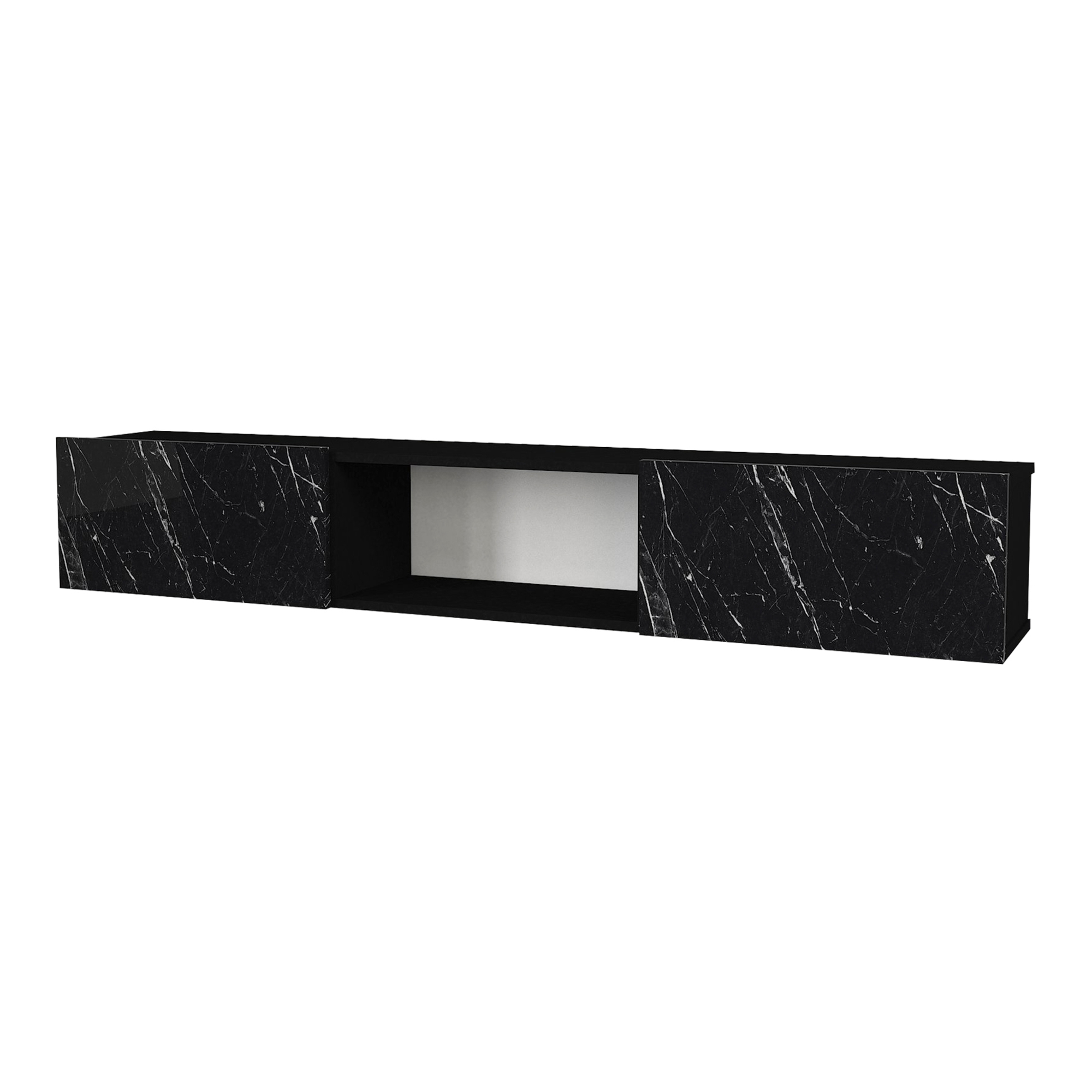Comodă TV suspendată Paltamo 180 cm, negru cu efect marmură