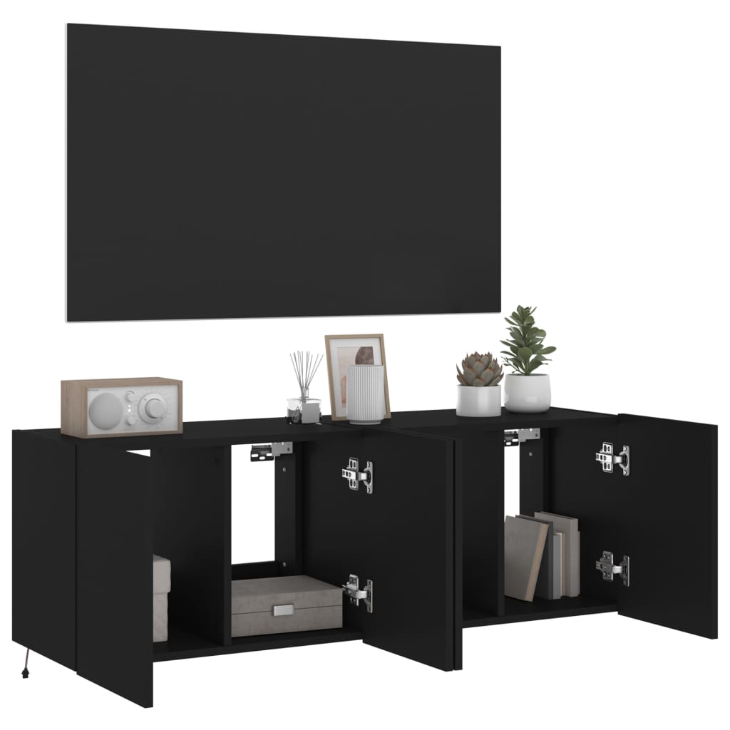 Comode TV de perete cu lumini LED, 2 buc., negru, 60x35x41 cm GartenMobel Dekor