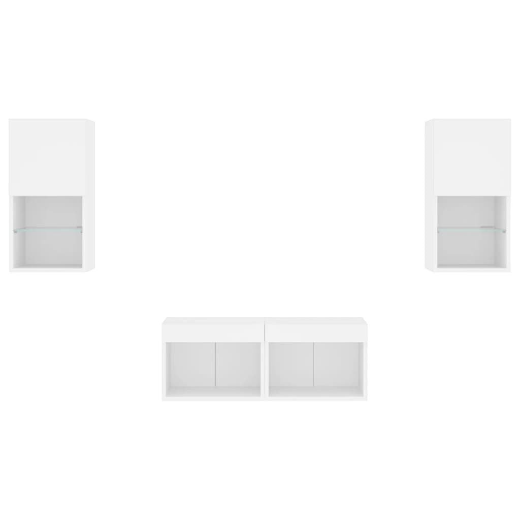 Comode TV de perete cu lumini LED, 4 piese, alb GartenMobel Dekor