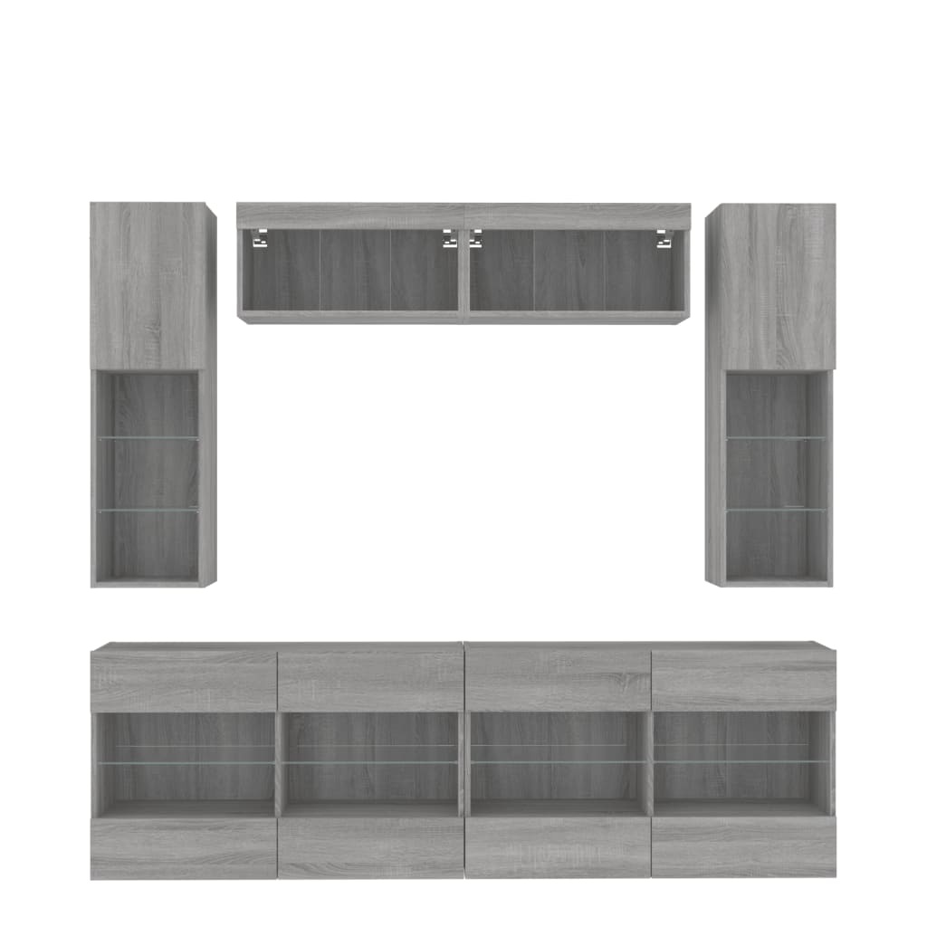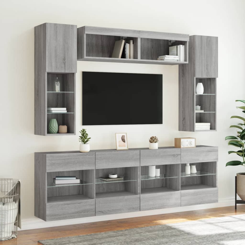 Comode TV de perete cu lumini LED, 6 piese, gri sonoma GartenMobel Dekor