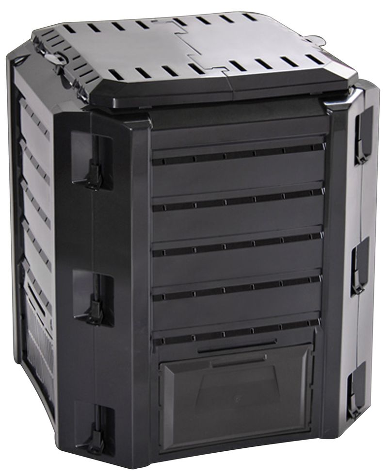 Fabricat din material rezistent si usor, acest compostor negru este potrivit pentru utilizare in curte sau gradina, fiind simplu de amplasat si de folosit. Usa practica din partea inferioara permite acces facil la compostul matur, astfel incat sa il poti colecta comod ori de cate ori ai nevoie.