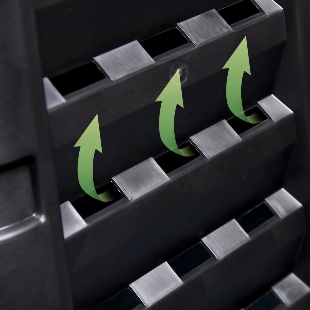 Temperatura ridicată din interiorul unității de compostare ajută la descompunerea rapidă a bacteriilor și produce un humus mai bun. Având un design compact, compostorul de grădină ocupă puțin spațiu, dar are un volum mare. Capacele de deasupra vă facilitează umplerea prin partea superioară. În plus, clapeta asigură o îndepărtare simplă a humusului. Sistemul de irigare prin picurare, orificiul pentru lacăt, zăbrelele laterale solide, balamalele rezistente ale trapei, mânerul confortabil și portițele glisante mari, cu suporturi confortabile, toate asigură utilizarea ușoară a compostorului.