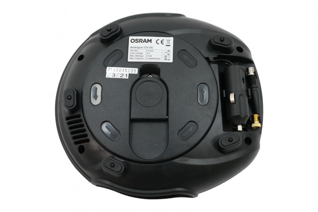 Compresor rapid de anvelope cu cablu de înfășurare Dispozitivul de umflare a anvelopelor analogice OSRAM Tyreinflate 200 umflă o anvelopă de 13 inchi de la plat în până la 4,5 minute**. Are un buton mare de pornire/oprire pentru o utilizare ușoară. Designul său stabil menține umflatorul nemișcat în timpul utilizării. Alimentat de la o priză de 12 V a mașinii, cablul de alimentare lung de 3 m al Tyreinflate 200 facilitează accesul la toate anvelopele din jurul vehiculelor. Afișează valorile presiunii în kPA, bar și PSI. Include un compartiment de depozitare pentru capacele supapelor anvelopelor atunci când sunt utilizate. Vine cu un set de adaptoare din trei piese pentru utilizare cu anvelope de biciclete, anvelope de motociclete, mingi și alte gonflabile. Timp de umflare - 4,5 min Lungimea furtunului de aer - 50 cm Lungimea cablului de alimentare - 3 m Dimensiune afișaj - 50 mm Unități de măsură - PSI, kPa, bar Presiune maximă - 5,5 bar Precizie (bar) - +/- 0,1 bar Debit (l/min) - tbc Tensiune de funcționare - 12 V Sursă de alimentare - ștecher cu siguranță de 12 V Tensiune nominală - 11,1 V Puterea nominală - 120,00 W Tip de afișare - Analogic Nivel de zgomot (dB) - 90 dB Recomandat pentru utilizare cu - mașină, bicicletă Dimensiuni si greutate Înălțime - 180 mm Latime - 79 mm Lungime - 197 mm Accesorii: Adaptoare pentru: Mingi, Saltea pneumatica, Bicicle