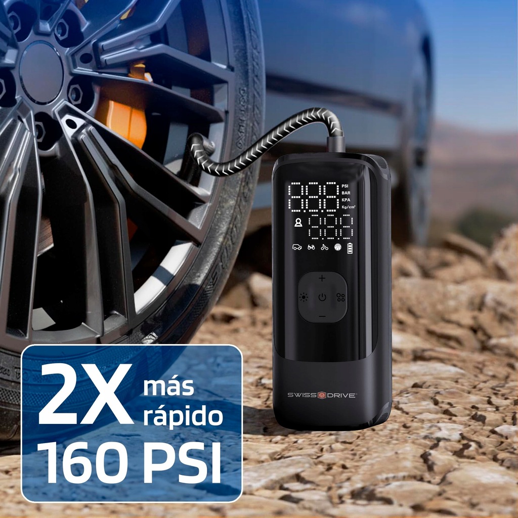 Acest compresor de aer portabil este solutia ideala pentru a umfla rapid si eficient anvelopele auto, moto, bicicleta sau diverse articole sportive. Cu o presiune maxima de 150 PSI (10,3 bari) si o viteza de umflare de doua ori mai mare decat alte pompe similare, ofera performanta ridicata si fiabilitate in orice situatie.