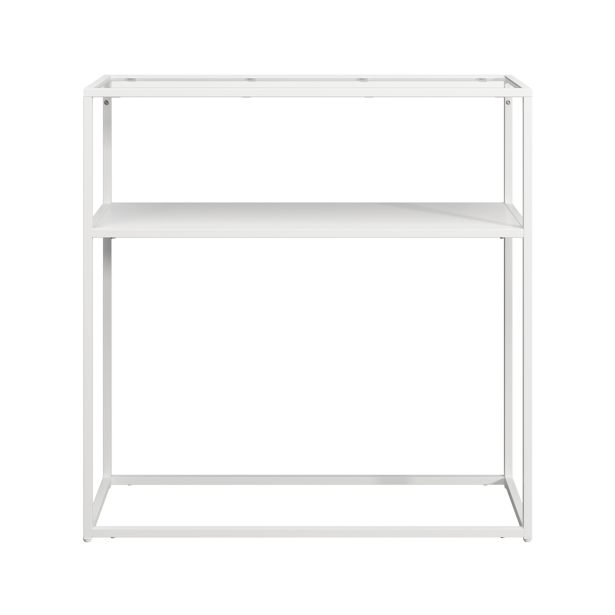 Consolă pentru hol Kuhmo albă cu blat din sticlă securizată