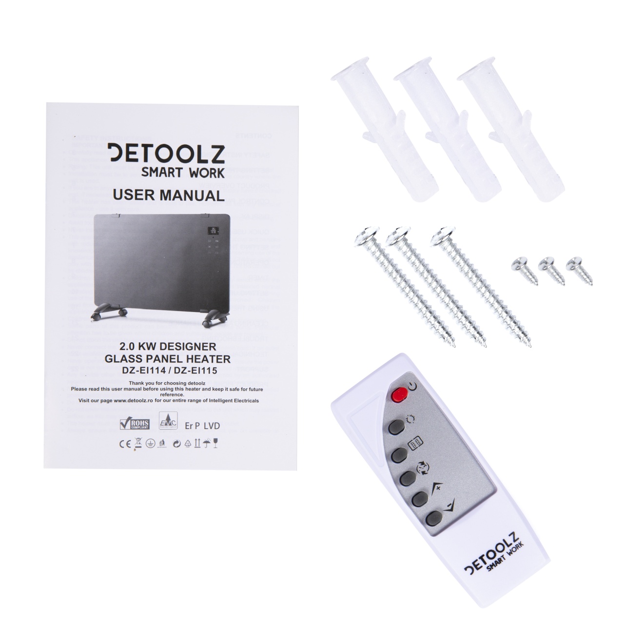 Convector electric WiFi Detoolz DZ-EI114 1000/2000W alb, cu LED și telecomandă