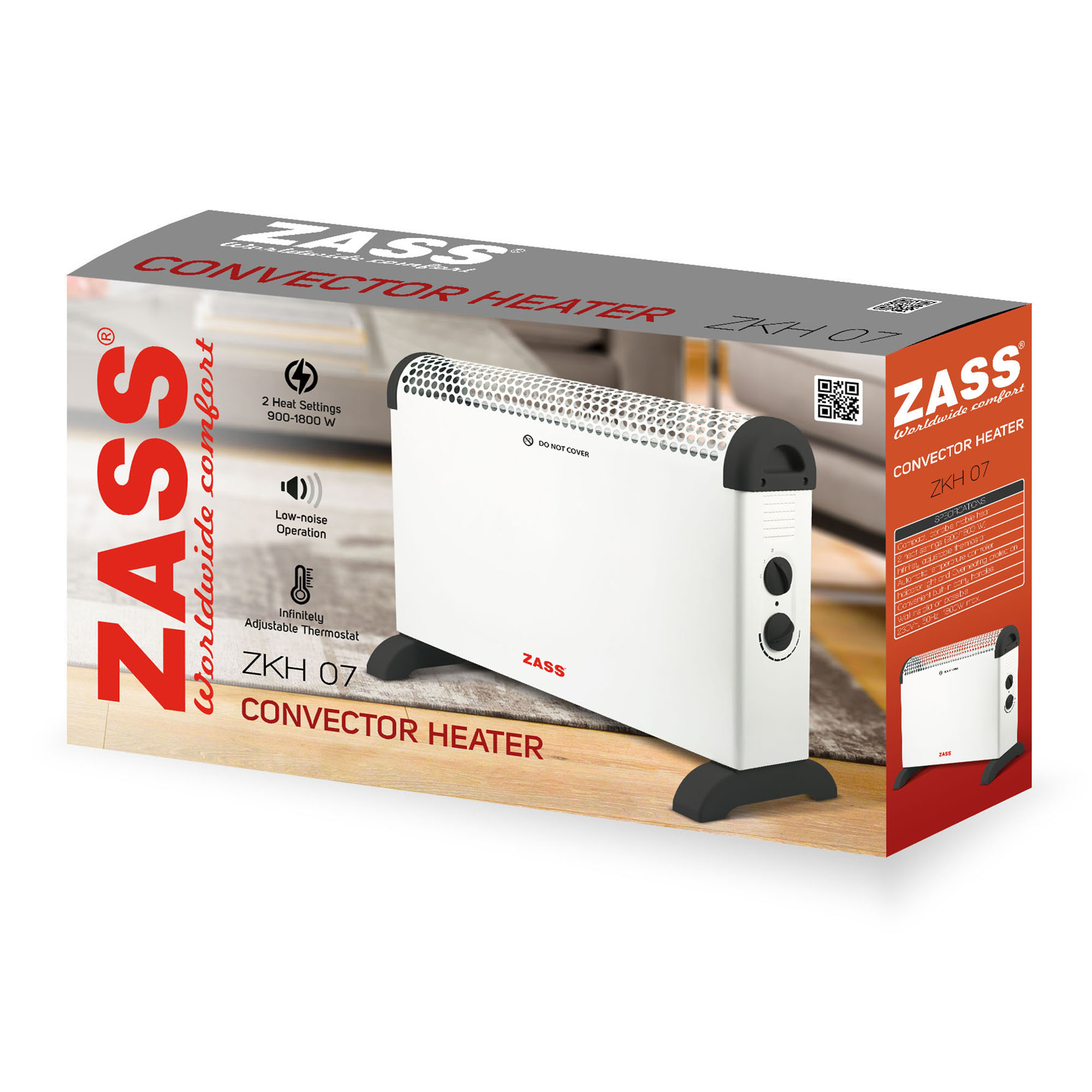 Convectorul electric ZASS ZKH 07 este o solutie practica si eficienta pentru incalzirea rapida a camerei, fiind potrivit pentru locuinta, birou sau casa de vacanta. Datorita designului compact si elegant, acest convector electric 1800W poate fi amplasat atat pe podea, cat si pe perete, in functie de spatiul disponibil.