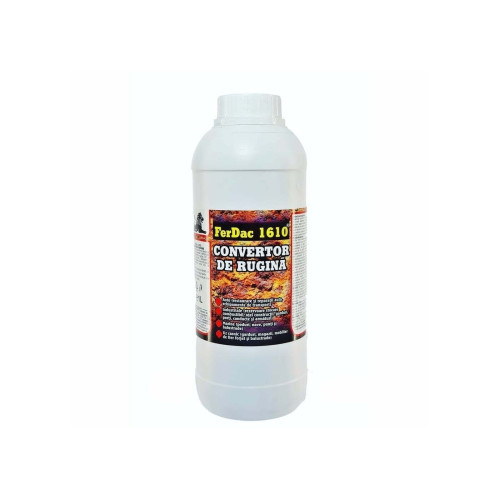 Scapă rapid de rugină și pregătește suprafața pentru vopsire cu convertorul de rugină Ferdac 1610. Formula sa transformă rugina într-un strat negru stabil, hidrofob, cu efect de barieră, oferind protecție anticorozivă și aderență mai bună pentru vopselele aplicate ulterior.