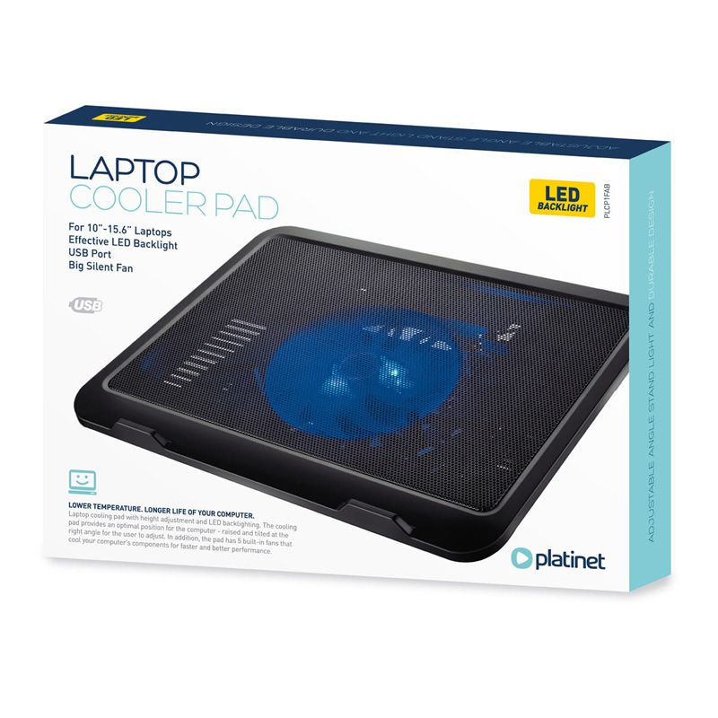 Este echipat suplimentar cu o priză USB suplimentară și iluminare de fundal LED. Este conceput pentru laptopuri cu o dimensiune a ecranului de până la 15,6 inchi.