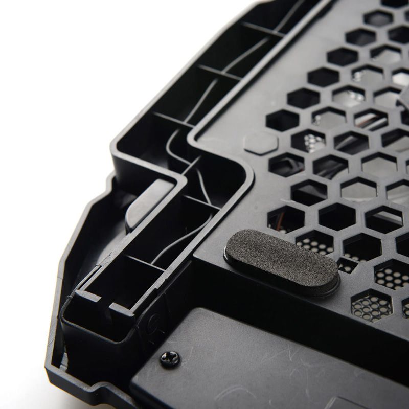 Este realizat dintr-o combinație de plastic și metal, ceea ce îl face atât ușor, cât și durabil. Are 4 ventilatoare silentioase cu dimensiunea de 70 * 70 * 15mm x2; 125 * 125 * 15 mmx 2 ajungând până la 2200 RMP (ventilatorul mai mare).
