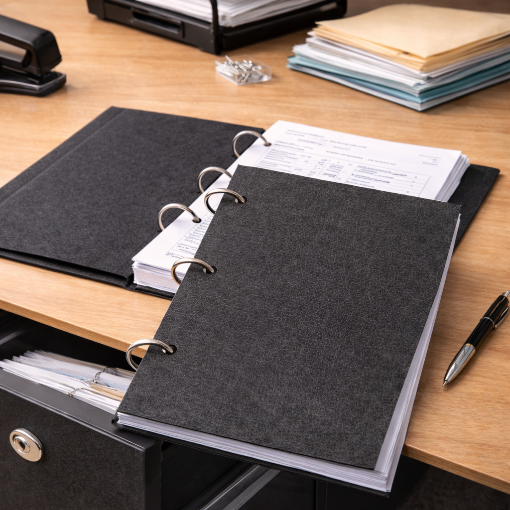 - Se folosește ca față/spate în seturile de îndosariere; nu este perforată (se perforează/decupă în funcție de sistemul ales)