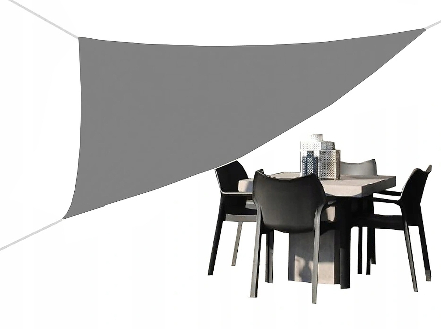 Designul triunghiular este practic si modern, usor de integrat in amenajari diverse. Se monteaza simplu cu ajutorul corzilor incluse, iar culoarea gri se potriveste usor cu mobilierul de exterior si decorul existent.