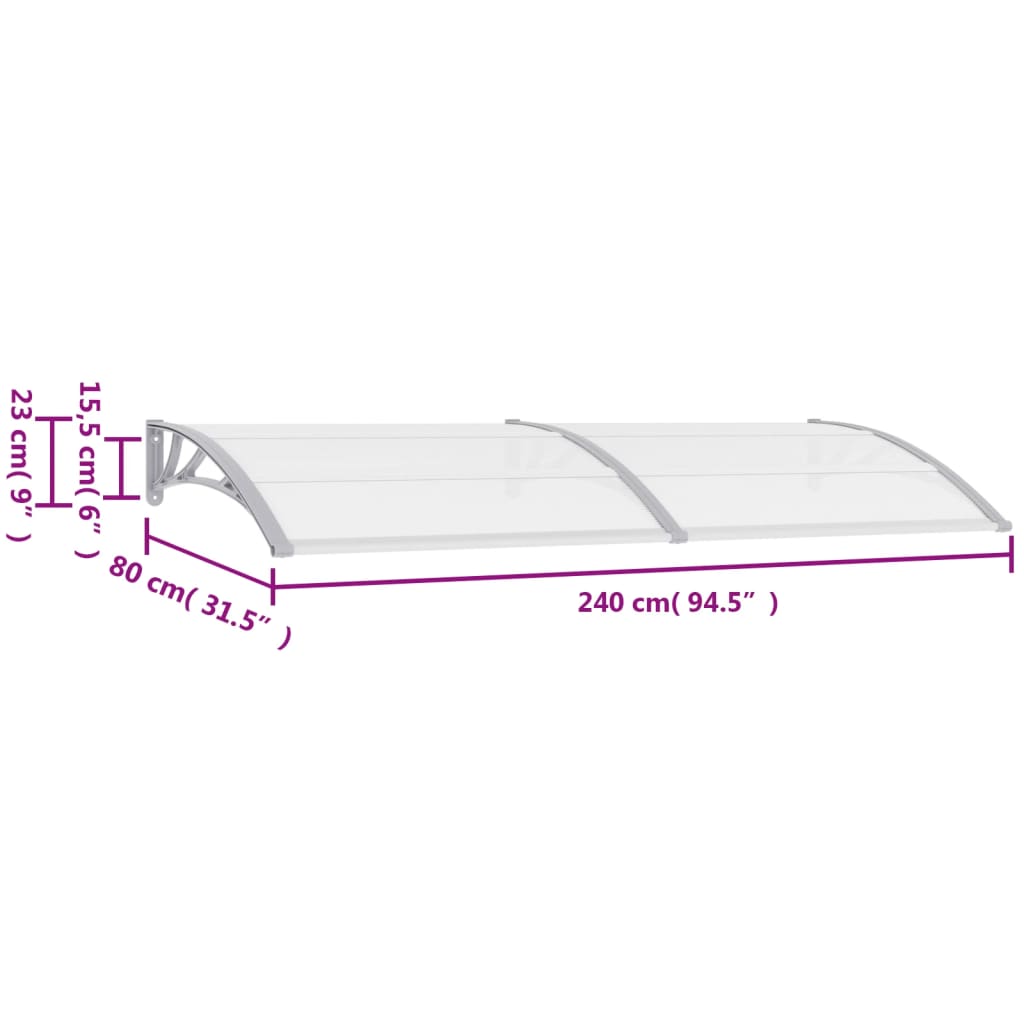 Copertină de ușă, gri și transparent, 240 x 80 cm, PC GartenMobel Dekor