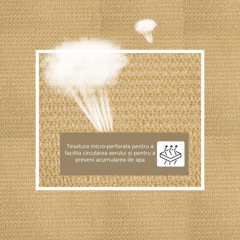 Copertina parasolar, dreptunghiulara, polietilena, cu sfoara pentru fixare, inele metalice, bej, 6x4 m GartenVIP DiyLine