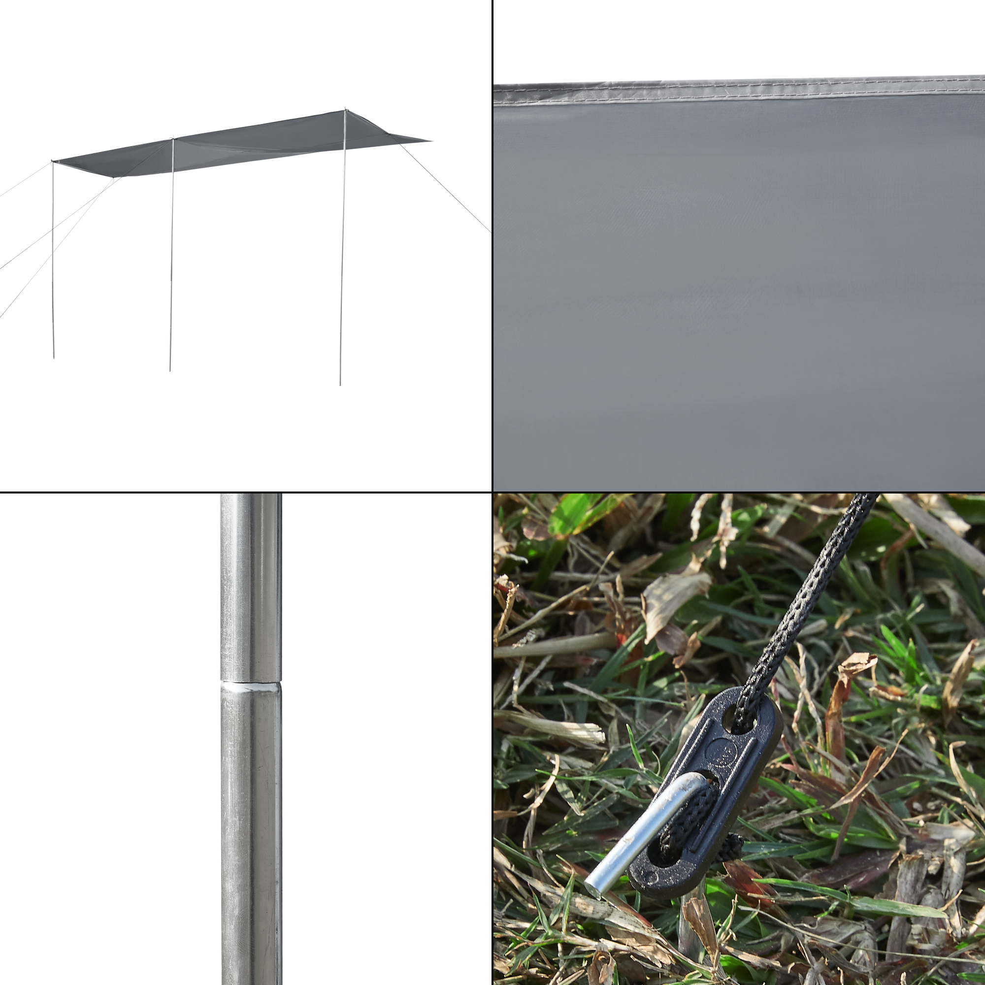 - Include: 1 x copertină, 5 x corzi de ancorare, 5 x țăruși, 1 x instrucțiuni de montaj