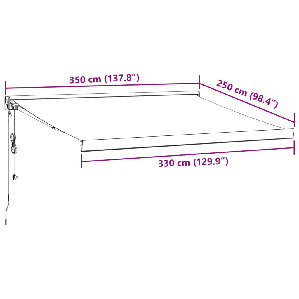 Specificatii Copertină retractabilă antracit/alb, 3,5x2,5 m, textil/aluminiu