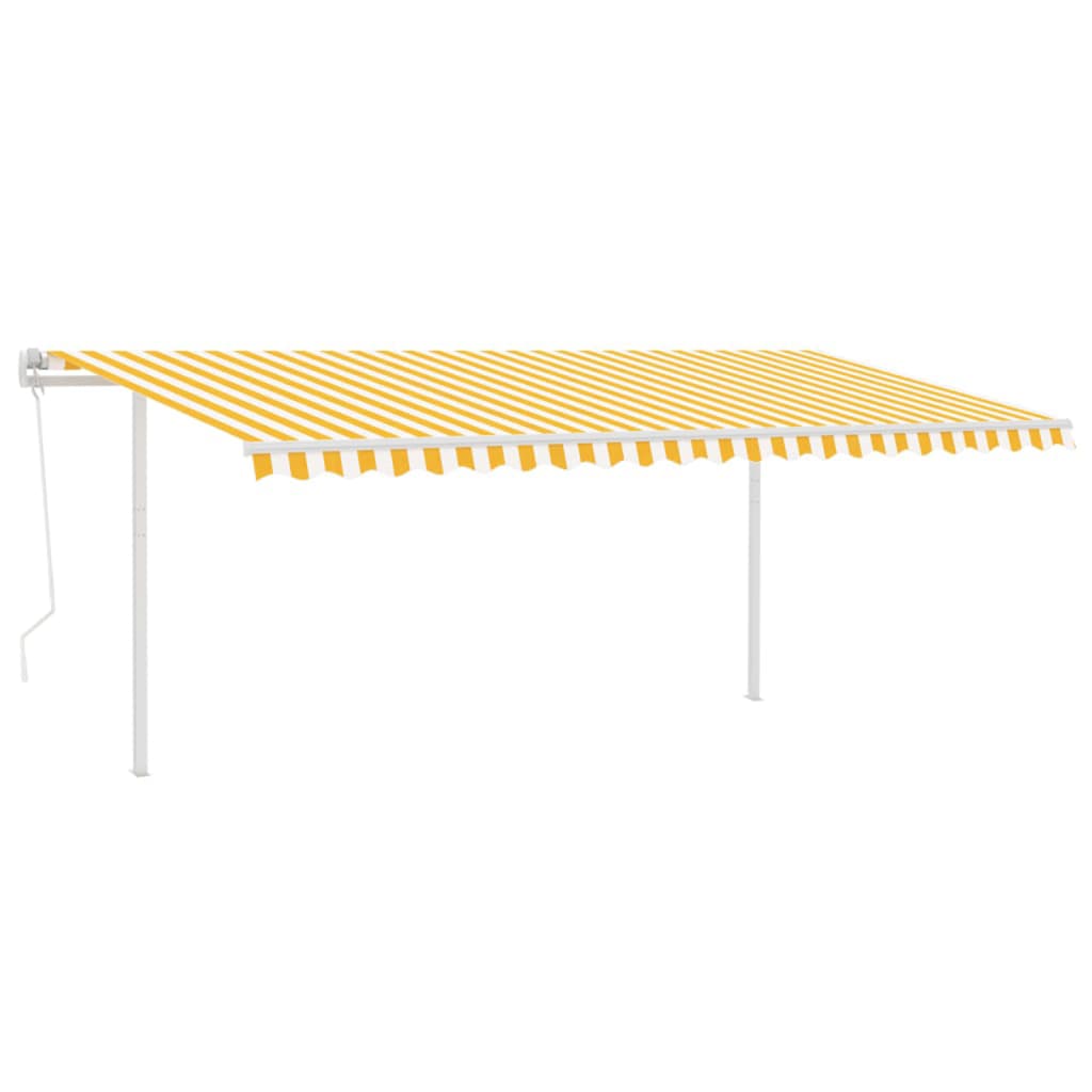 Copertină retractabilă automat, cu stâlpi, galben&alb, 5x3 m GartenMobel Dekor
