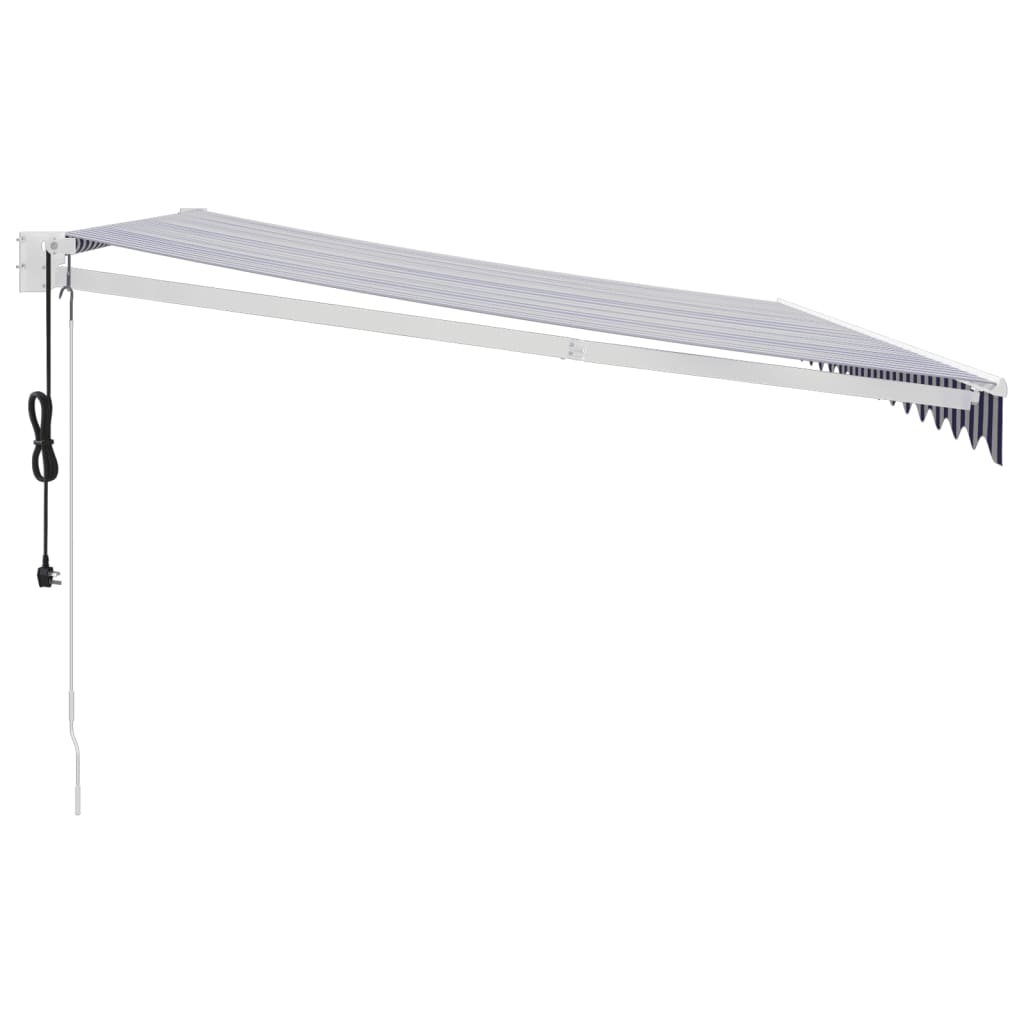 Copertină retractabilă automată, albastru și alb, 4,5x3 m GartenMobel Dekor