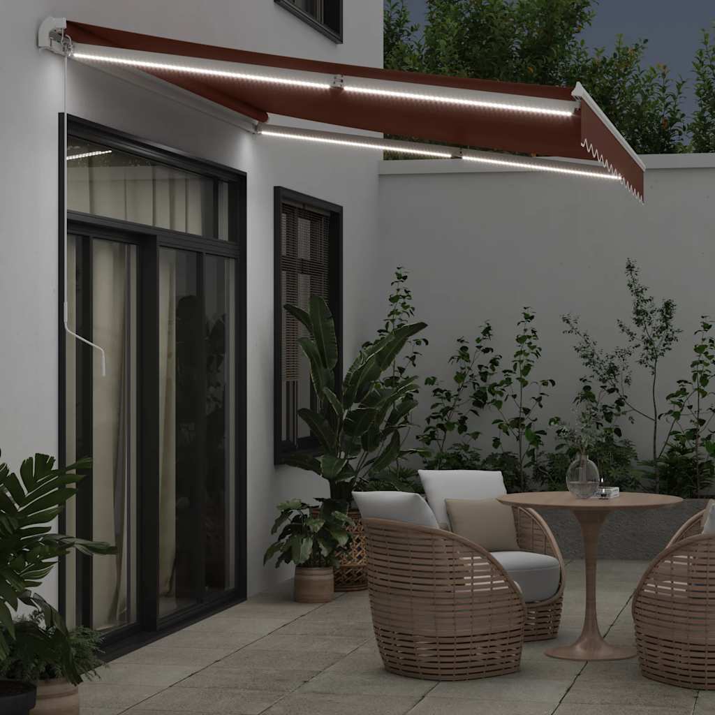 Descriere Copertină retractabilă manual LED, maro, 350x250