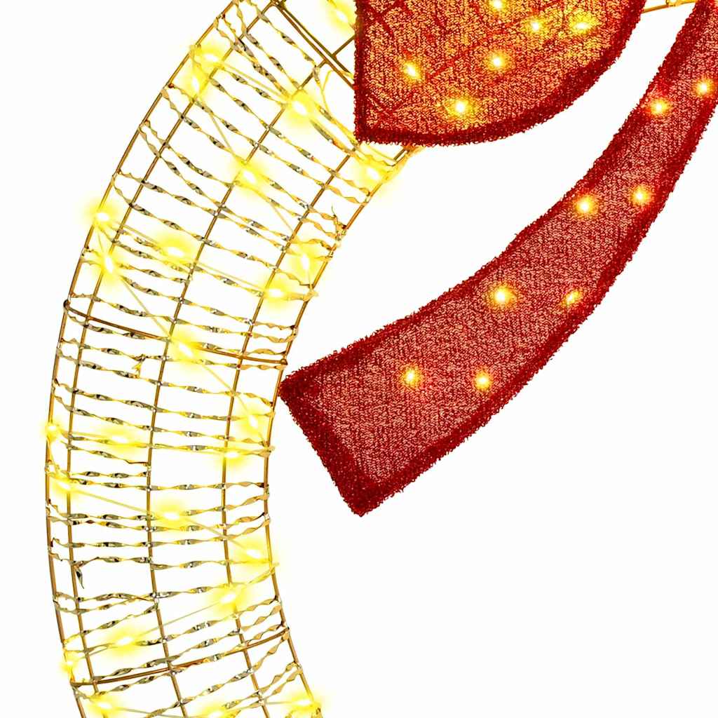- Componente incluse: Vine cu o coronita adorabilă, îmbogățită cu o fundă, ce completează perfect decorul de sărbătoare. Banda LED oferă iluminate versatile, creând o atmosferă caldă și primitoare.