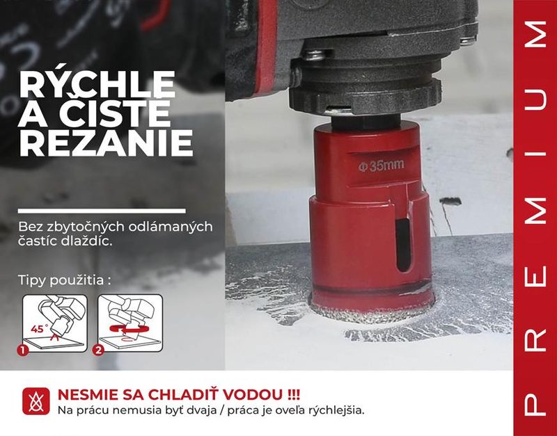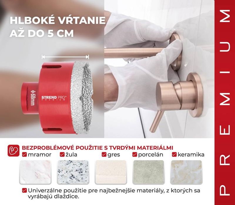 Coroana diamantată Strend Pro Premium DCB11 este alegerea potrivită pentru decupaje precise în materiale dure precum gresie, porțelan, plăci ceramice, marmură, granit și piatră naturală. Tehnologia avansată de îmbinare a diamantelor oferă rezistență foarte bună la temperaturi ridicate și contribuie la o durată de viață mai mare, cu tăiere ușoară și performanță ridicată la carotare.