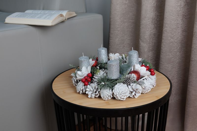 Utilizare: Așază coronița pe masa festivă, pe o comodă sau pe un suport decorativ și completeaz-o cu lumânări potrivite pentru Advent. Este o soluție excelentă pentru a crea un ambient primitor și festiv în perioada sărbătorilor de iarnă.