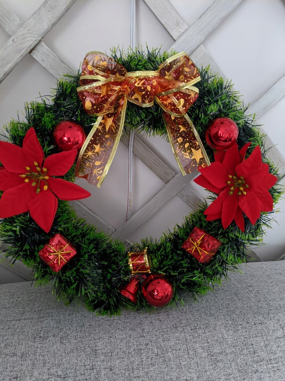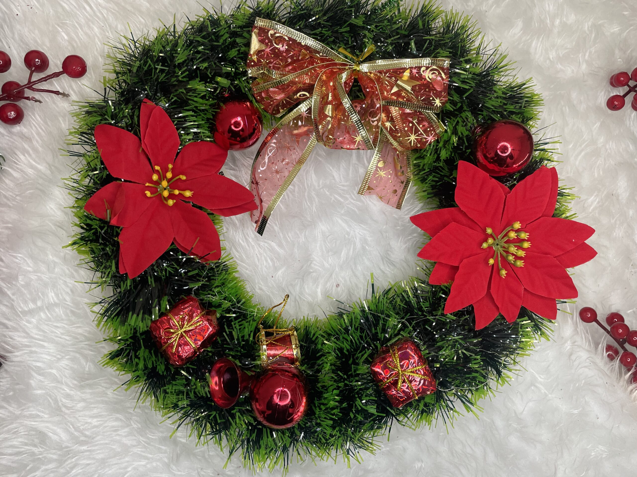 Coronita de Craciun decorata, 35 cm, brad artificial verde