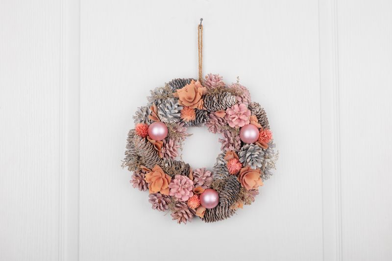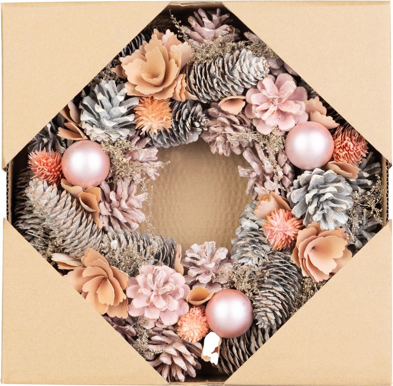 Adaugă un plus de farmec sărbătorilor cu această coroniță decorativă de Crăciun MagicHome, realizată într-o combinație elegantă de tonuri roz-portocaliu. Decorată cu conuri naturale, flori ornamentale și globuri decorative, coronița oferă un aspect modern, cald și rafinat, potrivit pentru orice locuință.