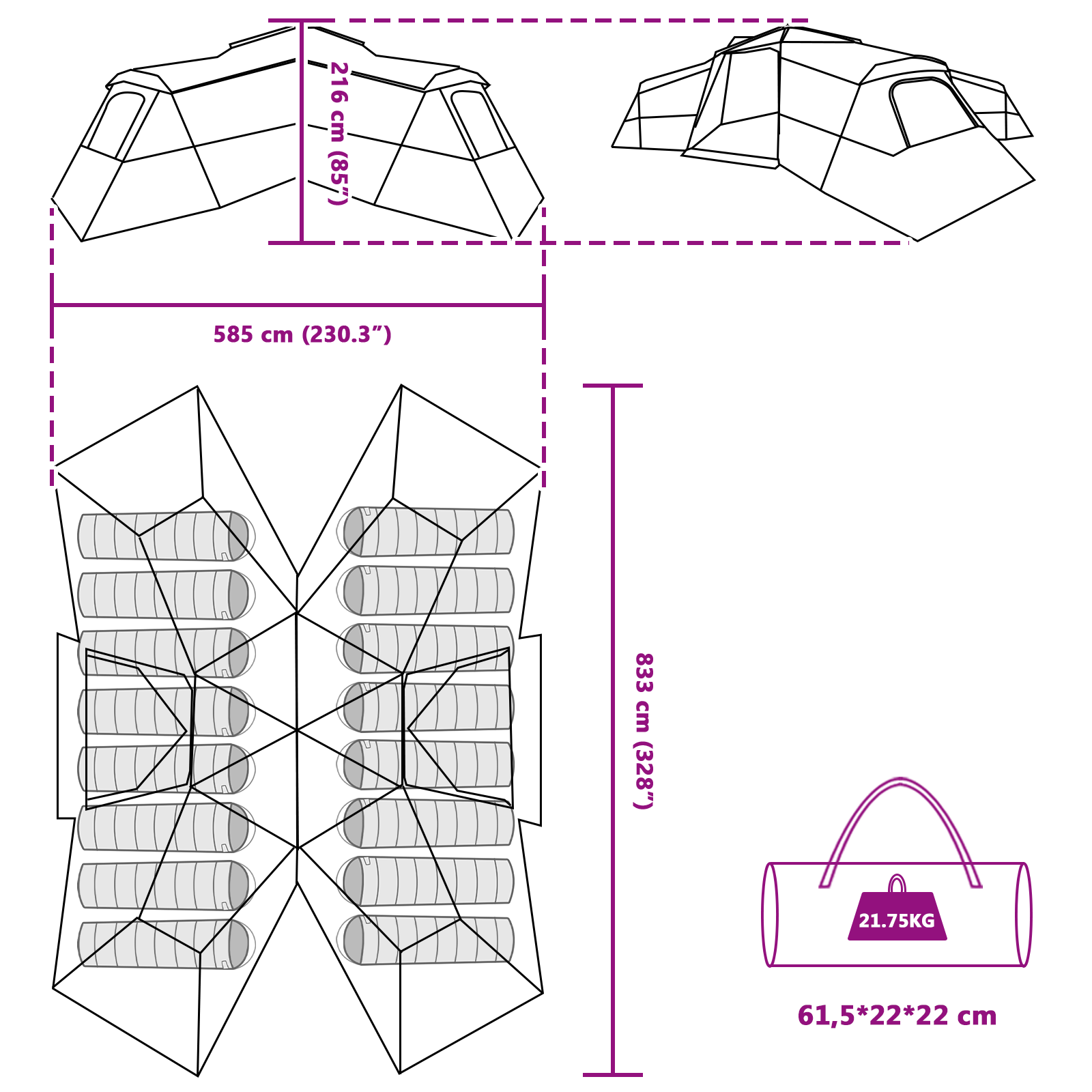 - Design Intern Spațios - Interiorul, măsurând 833 x 585 x 216 cm, e perfect pentru oameni, echipamente și chiar animale de companie. O să-ți placă spațiul, care îți face experiența de camping mai relaxantă.
