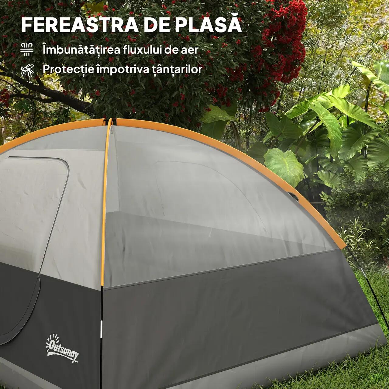 Cort camping, 2-3 persoane, impermeabil, cu geanta, gri si portocaliu, 205x275x135 cm