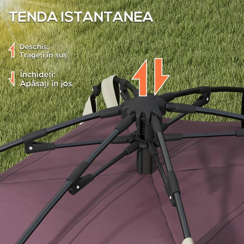 Cort camping, 2 persoane, impermeabil, cu ferestre, geanta, kaki si visiniu, 206x185x120 cm GartenVIP DiyLine