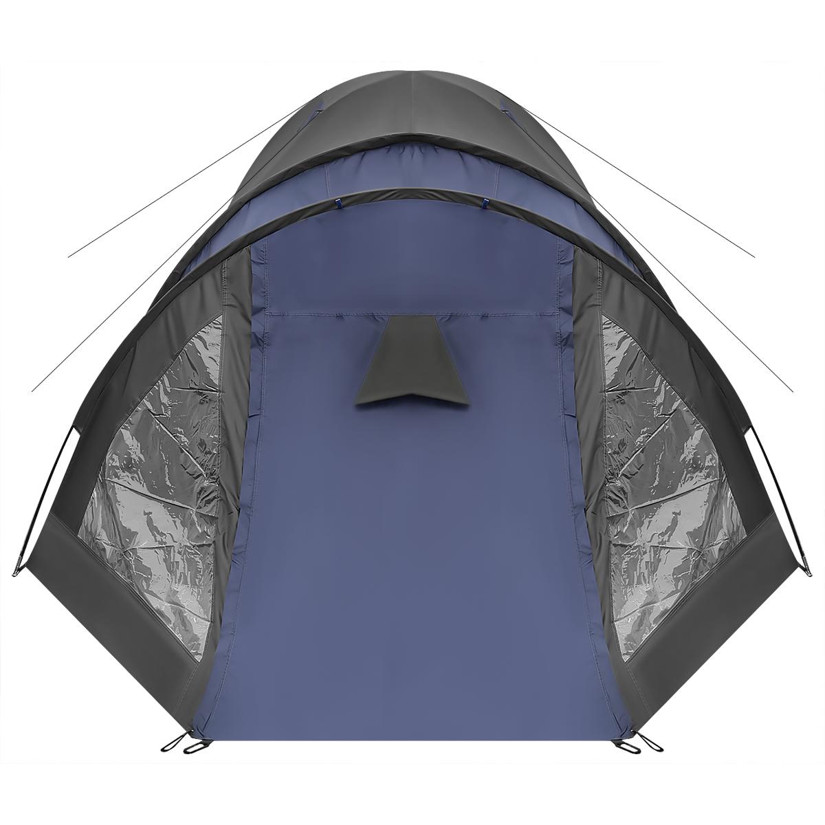 Cort camping pentru 4 persoane cu antreu, impermeabil 3000 mm, negru-albastru