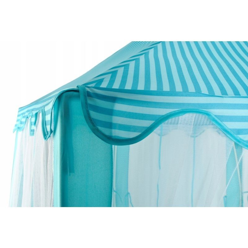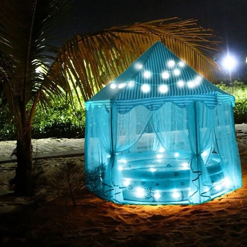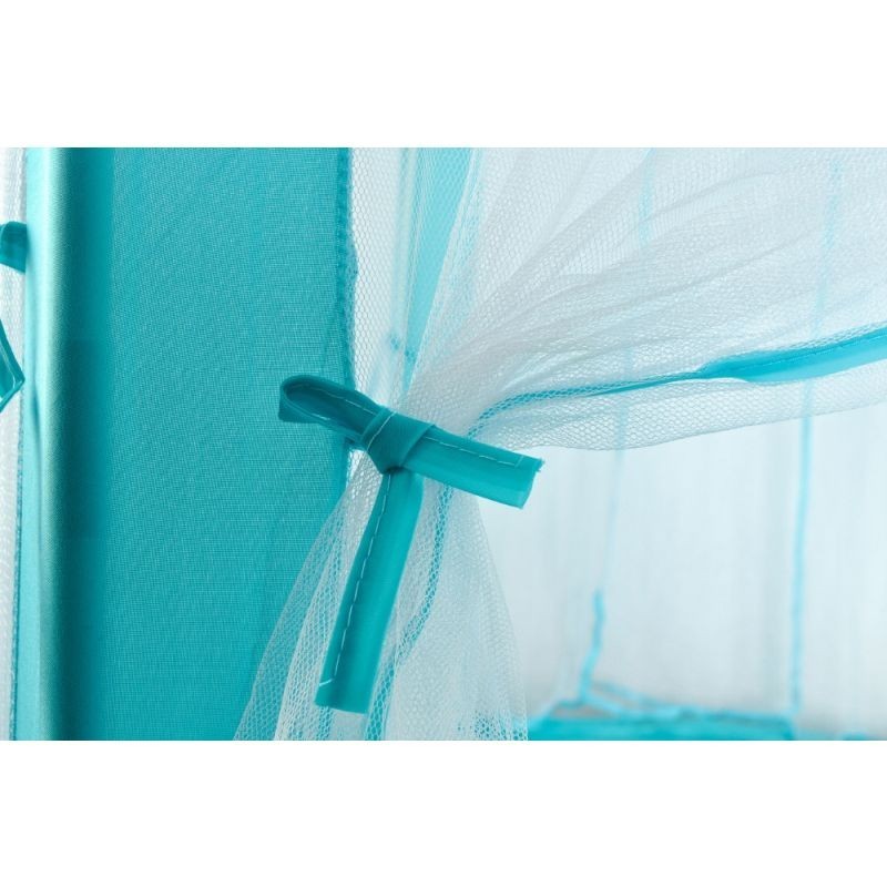 Cortul este ideal pentru amenajarea unui spatiu de joaca, atat in interior cat si in curte sau gradina. Acesta este proiectat astfel incat sa poata gazdui cu usurinta mai multi copii in timp ce sunt asezate in interior mai multe jucarii sau accesorii. Dispune de o baza hexagonala si de 6 intrari, fiecare intrare fiind acoperita de o perdea alba si translucida, care se imbina perfect cu restul cortului.