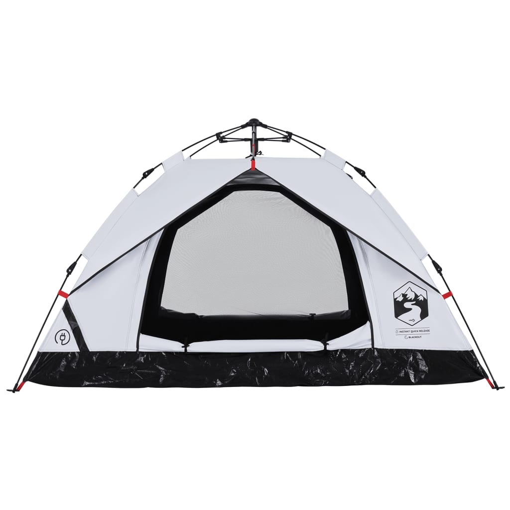 Cort de camping 2 persoane, alb opac, setare rapidă, țesătură GartenMobel Dekor