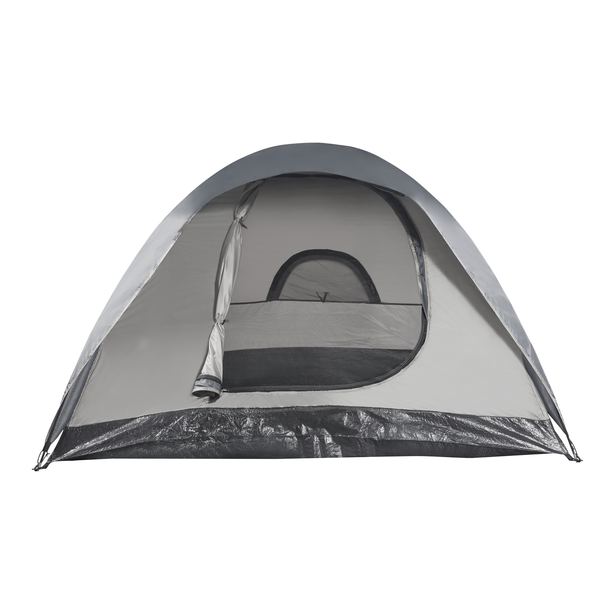 Cort de camping pentru 2 persoane, gri, cu supratentă și plase anti-insecte