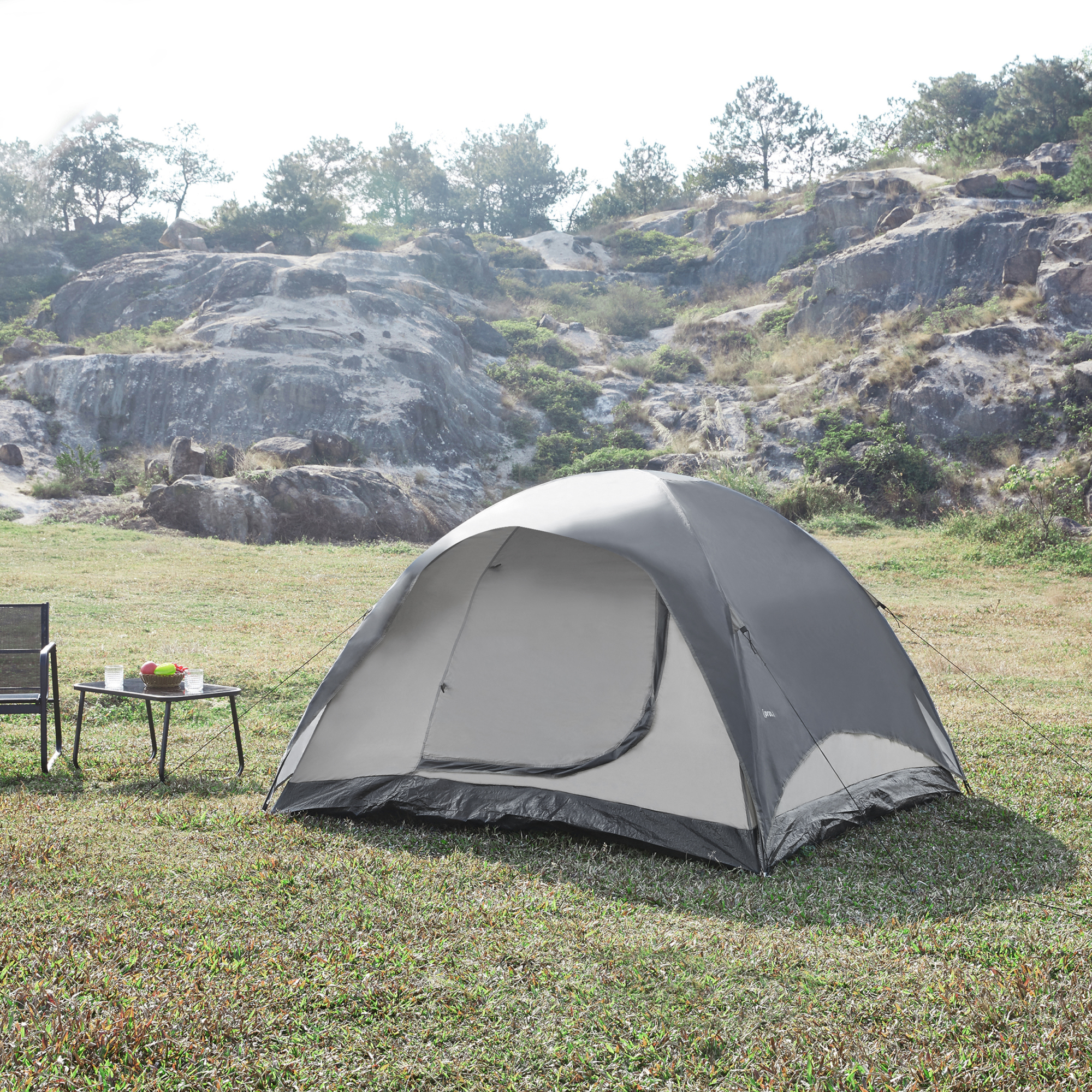 Descriere Cort camping 2 persoane, gri, supratentă