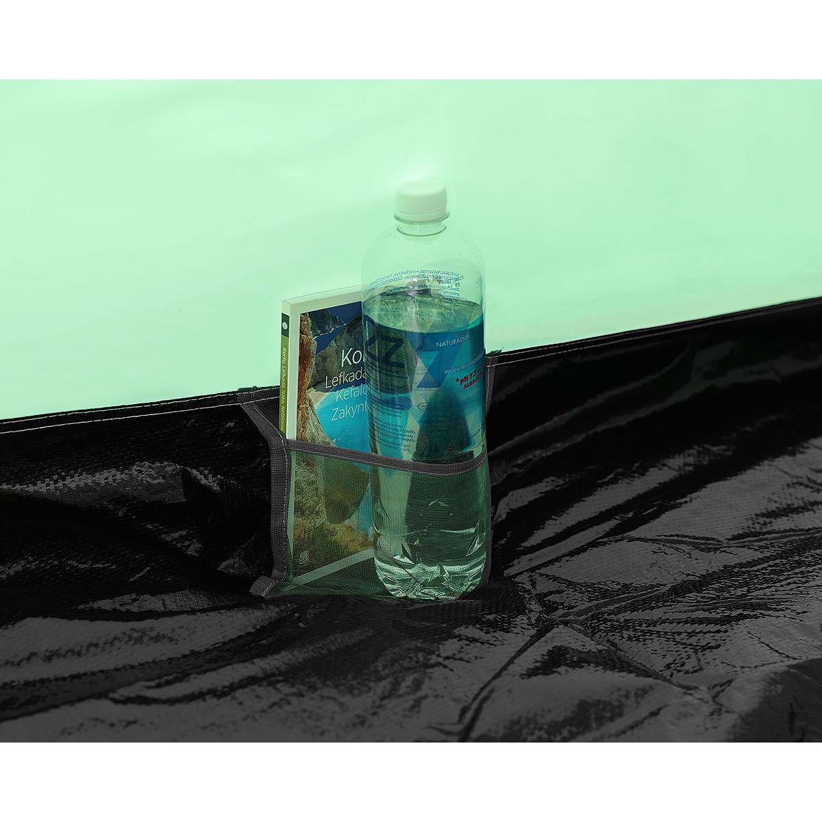 Utilizare: Monteaza cortul pe o suprafata plana, fixeaza structura din fibra de sticla, apoi ancoreaza-l cu sforile si cuiele incluse pentru stabilitate. Antreul poate fi folosit pentru depozitare, iar buzunarele interioare si agatatoarea centrala te ajuta sa organizezi mai usor obiectele esentiale in timpul sederii.