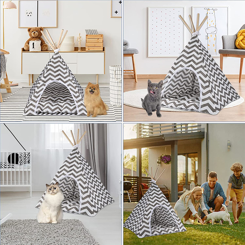 Construcția ușoară cu cadru din lemn permite montarea rapidă, fără unelte, iar greutatea redusă îl face ușor de mutat dintr-o cameră în alta sau de luat în călătorii. Modelul decorativ tip zig-zag se integrează frumos în locuință, astfel încât obții atât un spațiu practic pentru animalul tău, cât și un accesoriu estetic pentru casă.