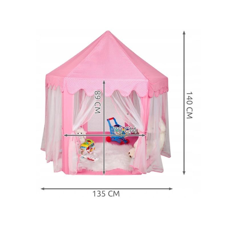 Cortul de joaca tip castel, sub forma hexagonala, poate da nastere celor mai minunate aventuri, aducand un plus de distractie copiilor. Avantajul principal al produsului este ca poate fi asezat atat in interiorul locuintei cat si in exteriorul acesteia, oferind suficient spatiu pentru ca cei mici si pentru jucariile acestora.