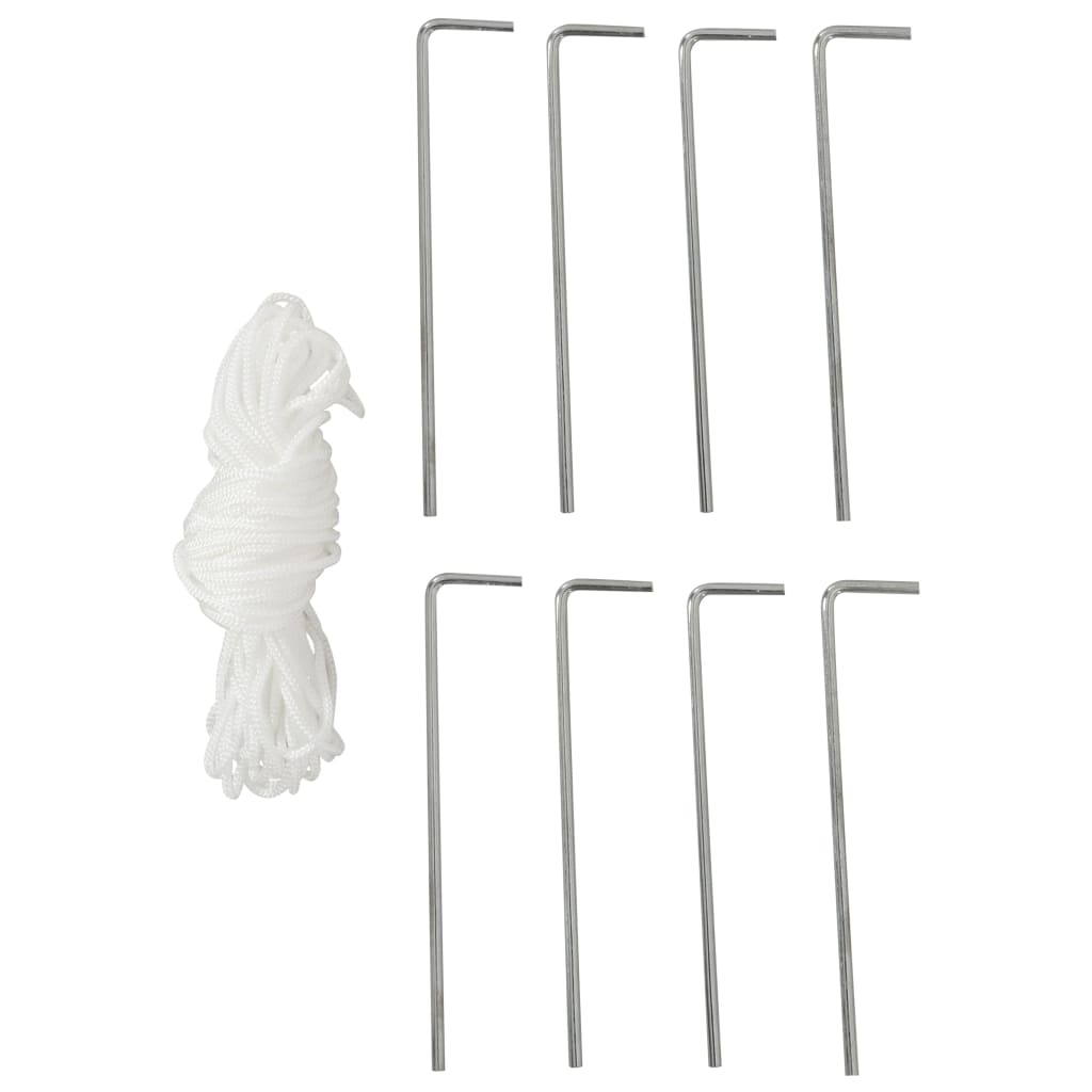 Fabricat din oțel foarte rezistent, vopsit electrostatic, acest cort pentru petrecere este extrem de durabil. Acoperișul este fabricat din polietilenă de calitate superioară, ceea ce îl face rezistent la apă și UV. Cortul are zece pereți laterali din plasă, care vă protejează de insectele nesuferite. Doi dintre pereții laterali sunt prevăzuți cu intrare cu fermoar pentru acces ușor. Cortul este ușor de instalat cu accesoriile de montare incluse.