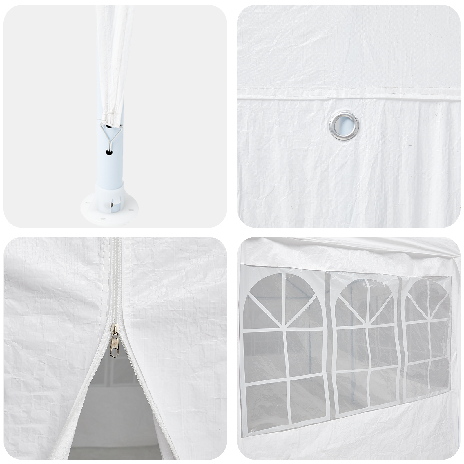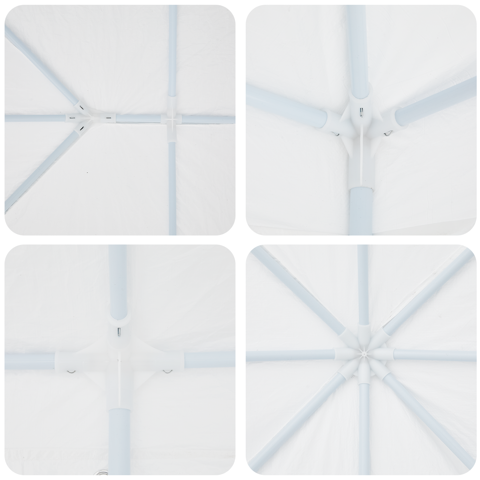 - Material Durabil: Fabricat din polietilenă rezistentă la apă, cortul ăsta te protejează pe tine și pe oaspeți de vremea neașteptată. Cadrele de metal îi dau stabilitate și protecție UV.