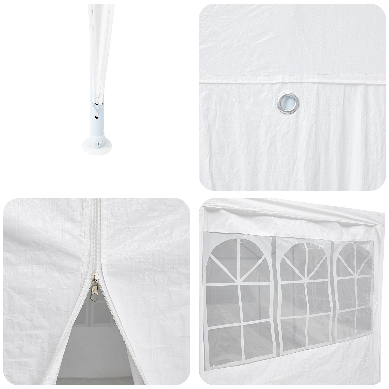 - Material durabil: Făcut din polietilenă waterproof, cortul ăsta te protejează pe tine și pe oaspeți de schimbările bruste de vreme. Cadru robust din oțel asigură stabilitate și protecție UV, garantând că evenimentele decurg fără probleme.
