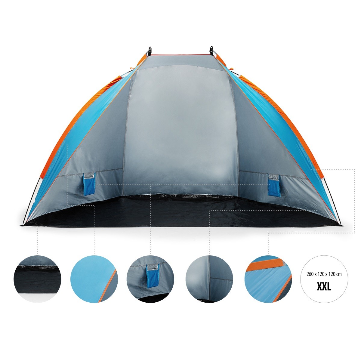 Cortul de plaja Nils NC8030 Albastru, a fost realizat din materiale de cea mai buna calitate. Materialul de pe podea este impermeabil, astfel incat nisipul umed nu va fi o problema. In cort, au fost folosite materiale care preveni incalzirea. Acest lucru este foarte important, mai ales in zilele calduroase, cand ascunderea intr-un cort ar trebui sa aduca usurare de la temperaturile ridicate. Cortul are, de asemenea, un strat care protejeaza impotriva razelor UV.