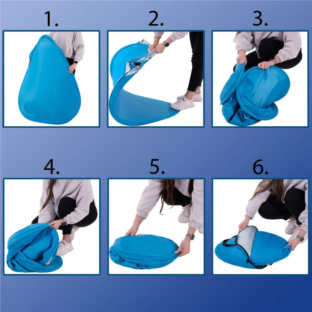 Cort de plaja POP-UP autoexpansibil cu protectie UV si ventilatie, albastru