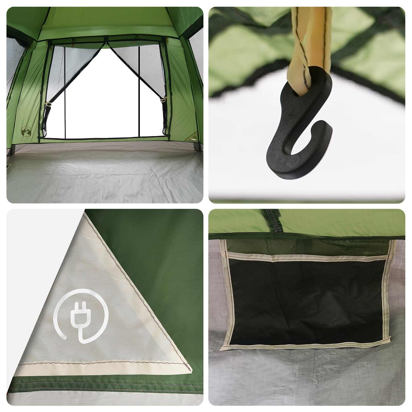 - Caracteristici de design inteligente Cu două uși cu fermoar pentru acces ușor și ventilație, și buzunare din plasă pentru lucruri esențiale. E-Port-ul face accesul la electricitate o joacă, îmbunătățind confortul aventurii tale în aer liber, iar sistemul rapid de demontare face montajul și demontajul floare la ureche.
