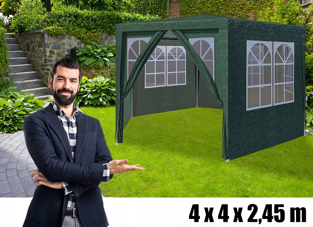 Cort pavilion de gradina hexagonal, 200x200 cm, cu pereti laterali cu ferestre, impermeabil cu rezistenta UV, verde Household NewTrend